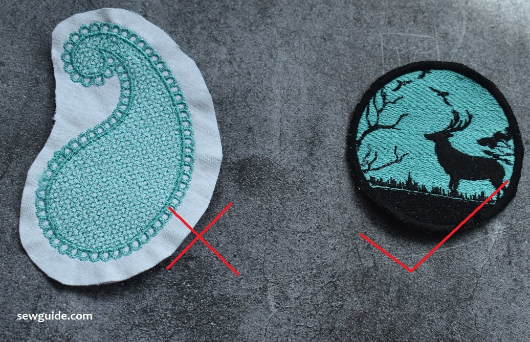Most patches have a black outline/border, in which case I would use black material as the base – if yours has a white border ,you should use a white base material. Felt is another popular material for many people – you can leave spaces in the felt patch because it has a sort of texture.