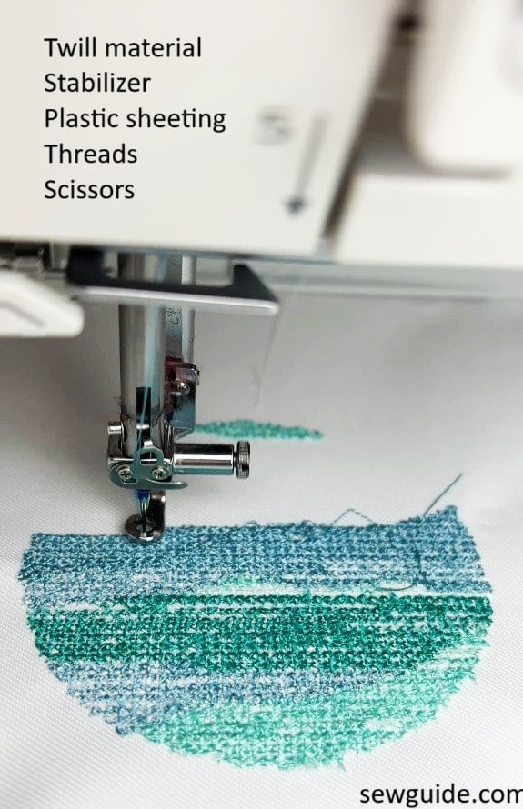 Basically almost everything that I use in my machine embroidery : I use a 5″ by 5″ hoop for my single patch embroidery, because it is the smallest I have. We choose the hoop based on the size of the design and so if you are making a small patch, use the appropriately sized hoop that will fit it. If you are making multiple patches in one go, saving time and effort, you can use your larger hoops.