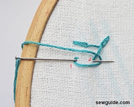 Come back for a slanted detached chain stitch along I-J which is parallel to the first chain stitch.