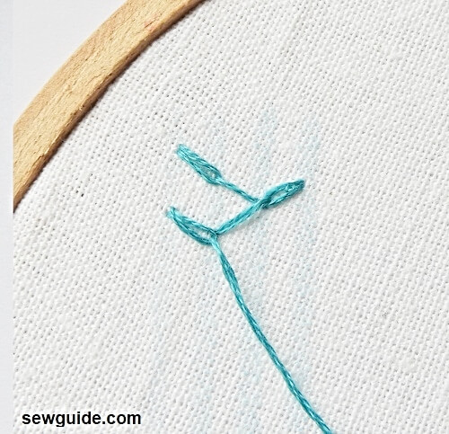 This is the same way as the previous stitch, just that every alternate stitch will be done to the other side resulting in projections to either side of the stitching line.