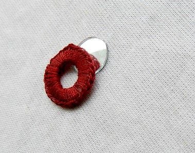 Take 6 strand embroidery thread on your needle and make blanket stitches around the thread ring.
