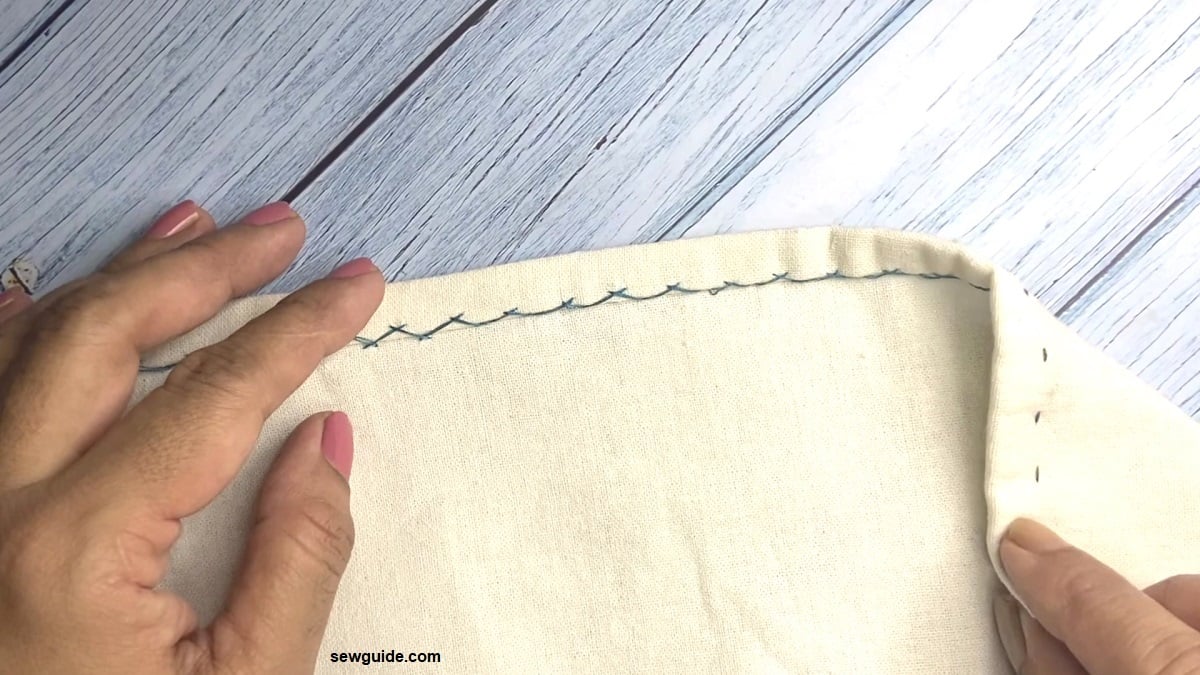In shadow work and Chikank work herringbone stitch is used on the back of the fabric to fill the design so that parallel rows of back stitches/running stitches are created on the front of the fabric. When hemming stretchy fabrics, make the stitch a little loose to get the maximum stretch.