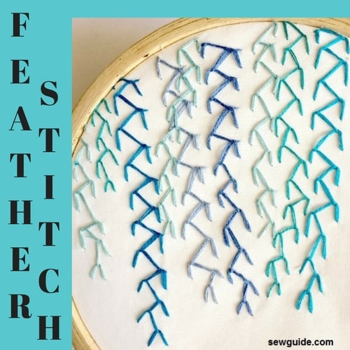 The feather stitch is a wonderful embroidery stitch you can use for border designs and used in floral designs. It is named so because of the feather like look of the finished embroidery stitch.