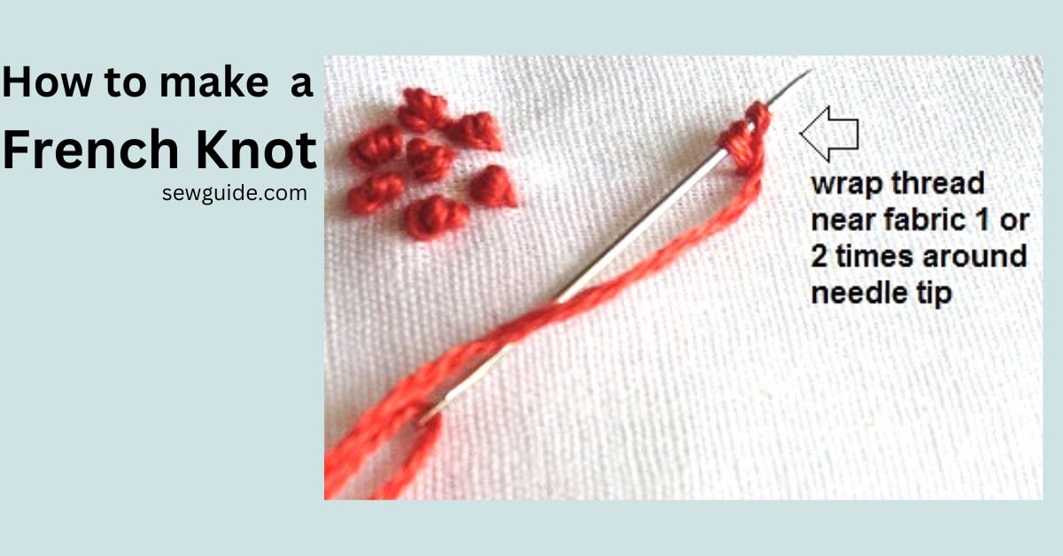 A French knot is a knot stitch made by wrapping thread once or twice around the needle and pulling through, leaving a small and beautiful knot on the fabric’s surface.