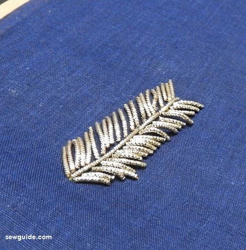 A loop is formed when you bring up the needle and thread the zardosi piece and then go back some two – three thread near from where you first came up.