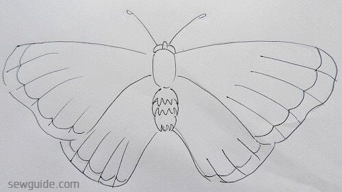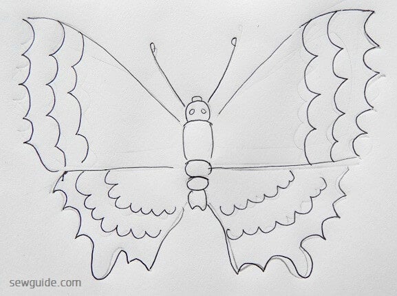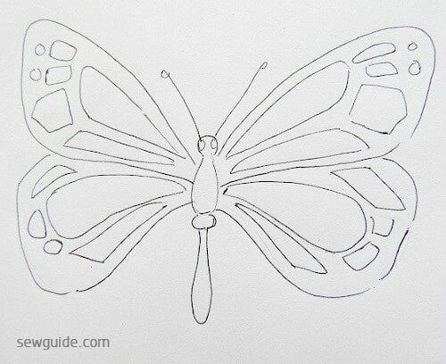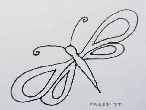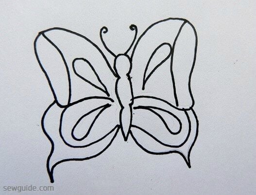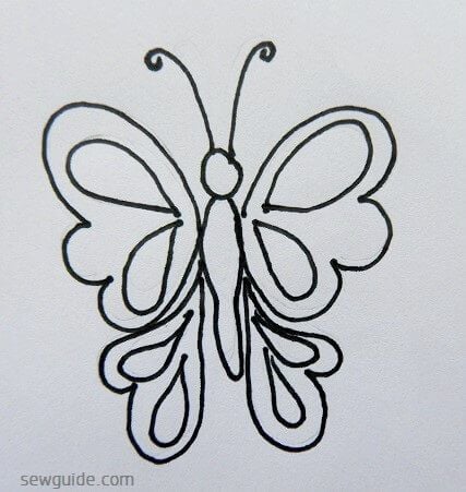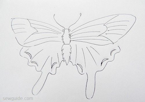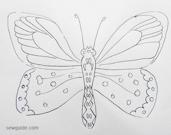 If you want a simple butterfly design you can complete the butterfly entirely with outline stitches – like back stitch, split stitch, running stitch, chain stitch etc.