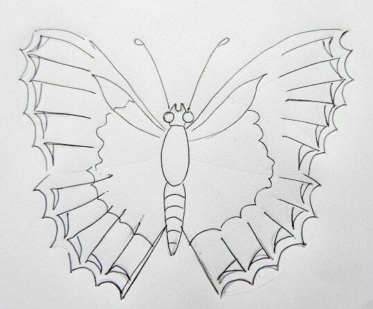 Draw your butterfly and add the beads along the outline, just inside.