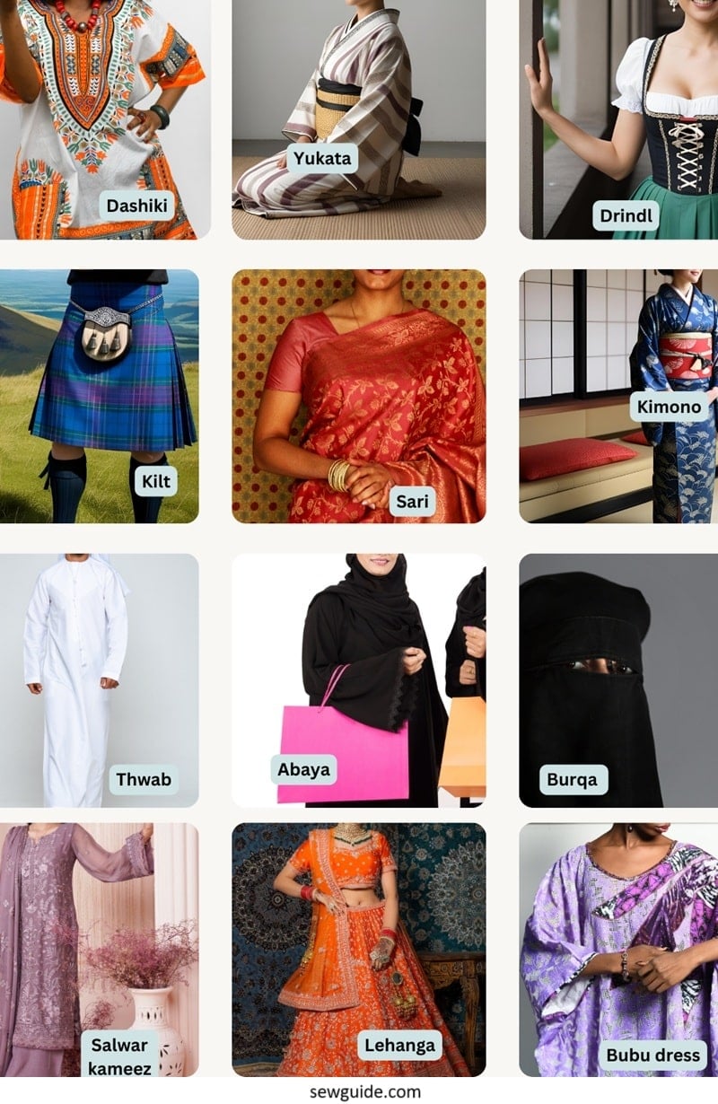 Names of clothes of different countries.