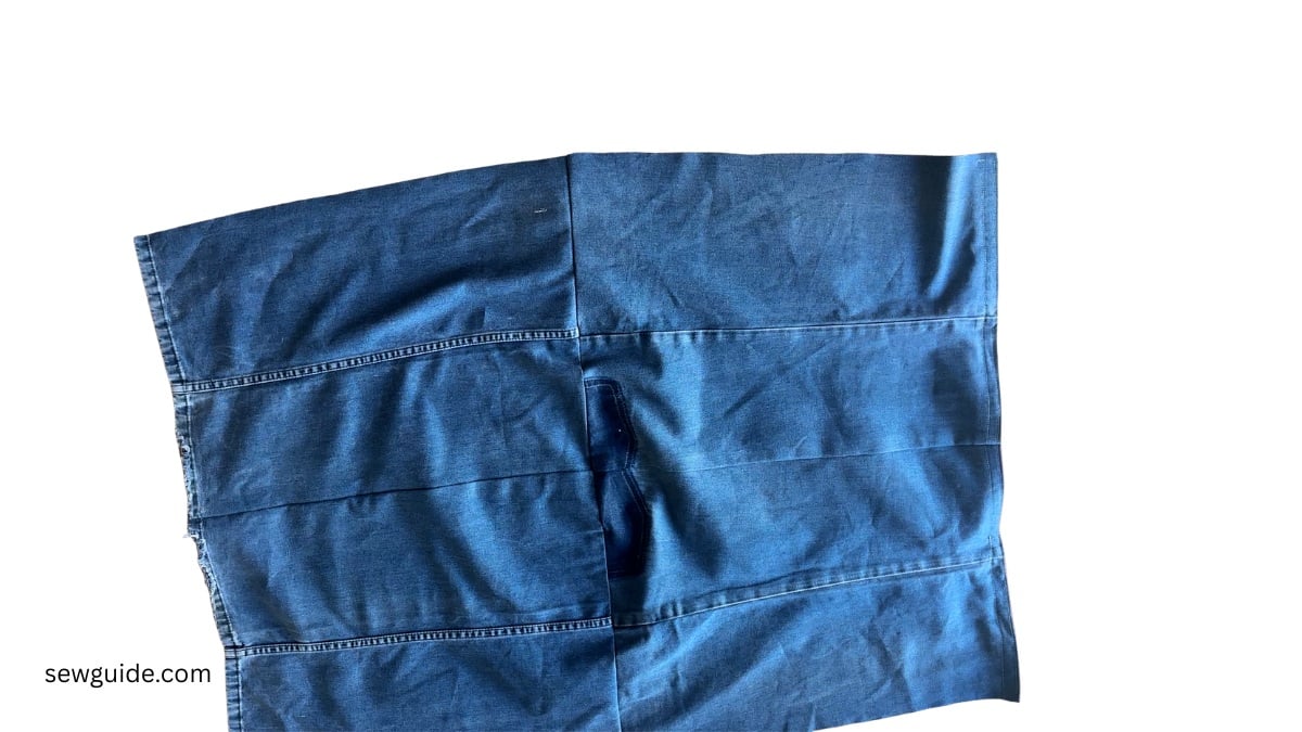 Open each leg along the inner seam so you have two flat denim panels – 4 panels in total.