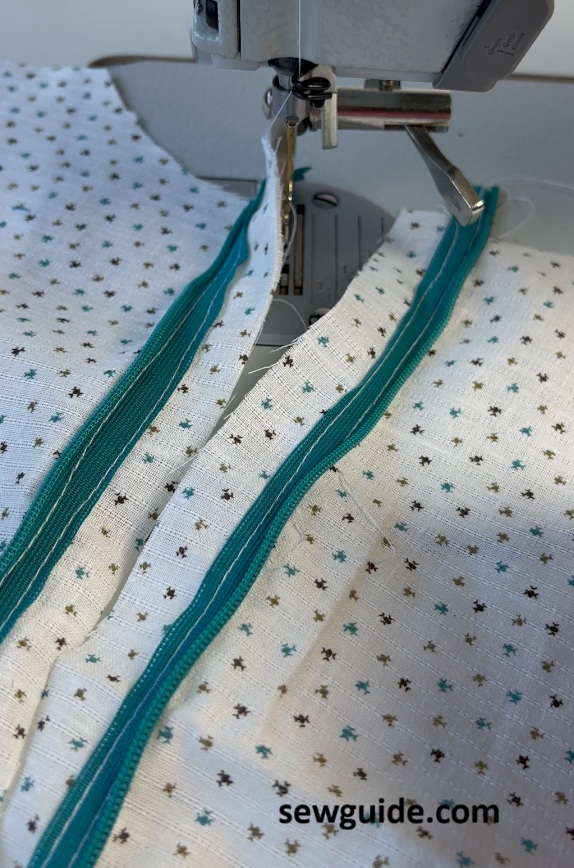 Keep the zipper right side down. Sew the zipper to the seam allowance so that the zipper teeth is aligned with the seam line. As you sew you have to make sure about this.