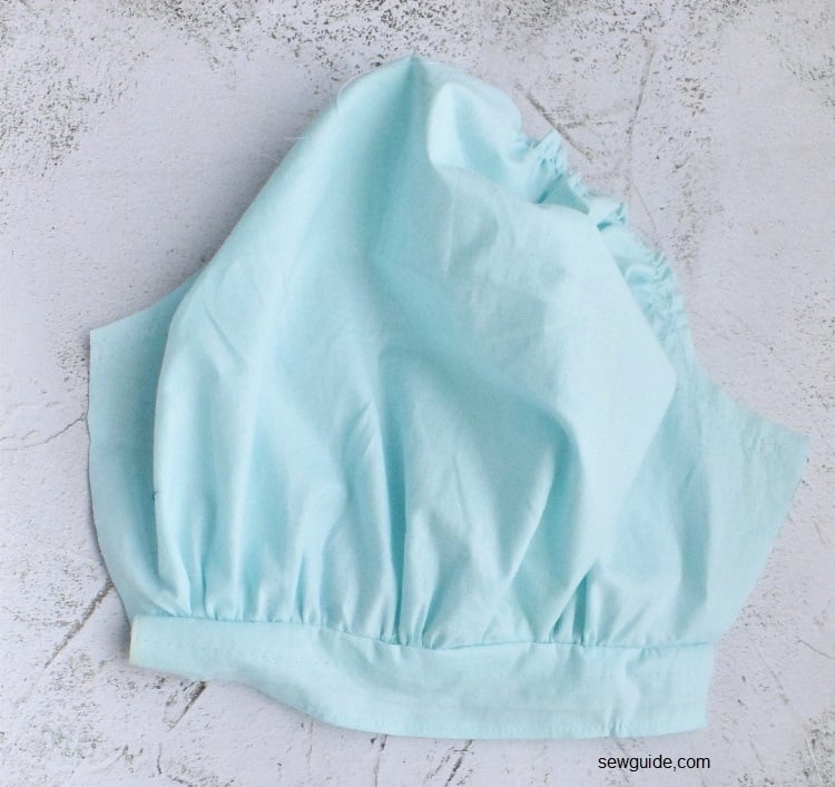 You should make two parallel stitching lines – make long stitches as you need loose stitches which will be easy to pull. Leave thread tails at both ends for both the stitching lines. Make similar stitching lines on the bottom edge too.