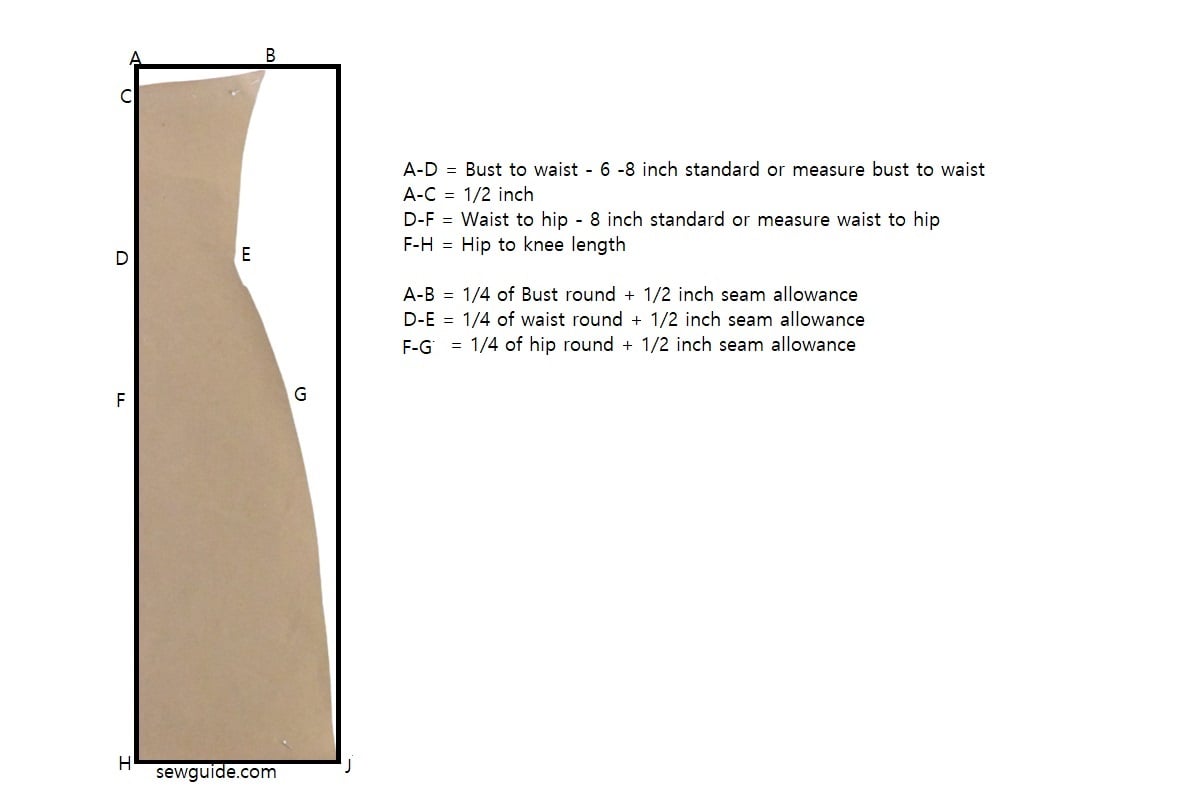 A-B = 1/4 of Bust round + 1/2 inch seam allowance