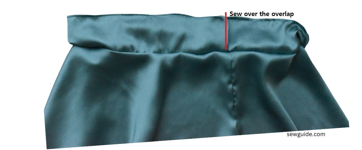 As you reach the end, Overlap the other end of the waistband over the starting edge.