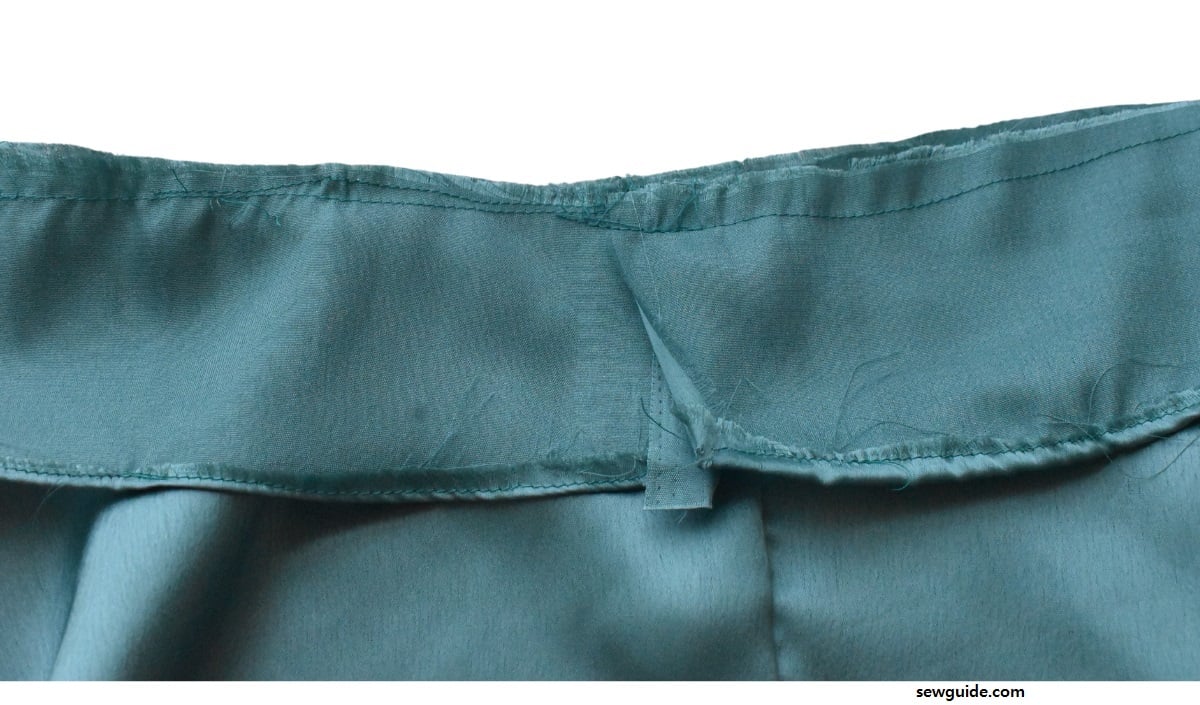 As you sew, ensure that the waistband seam edges are enclosed inside the waistband. They should not peek to the outside – this will be an untidy look.