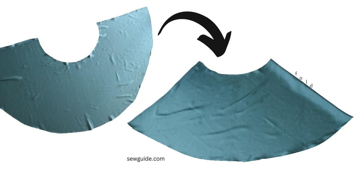 Fold the half circle you got by the middle, wrong sides to the outside.