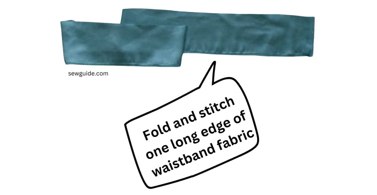 Finish one long edge of the waistband piece- for this, just fold one long edge to the inside once, and sew.