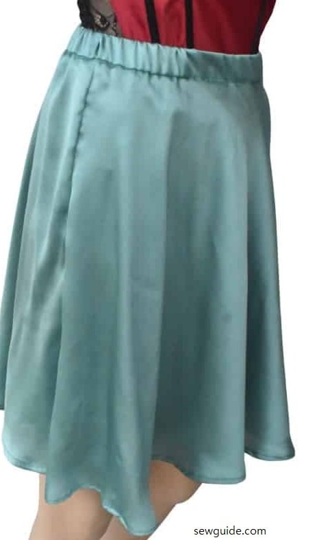 Ideally, you should sew the hem of any skirt after 24 hours of hanging it on a hanger. This will level the hem. Now you can sew a hem that is best – a baby hem – this is the most suitable hem for curved edges.