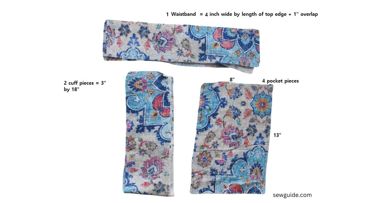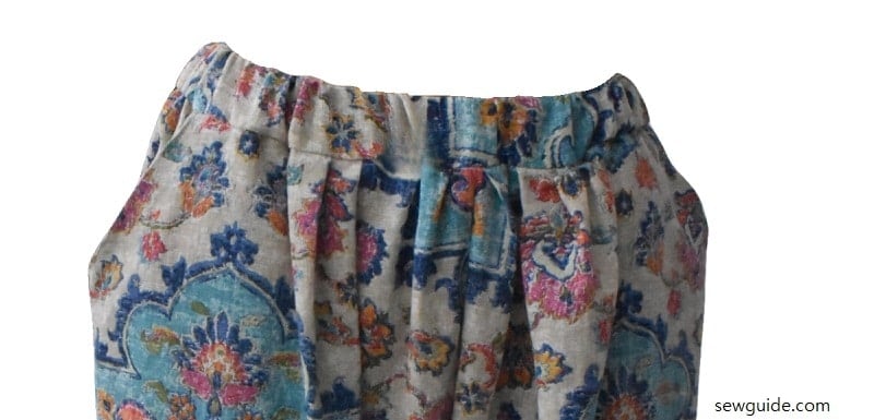 Insert the elastic through the casings – at the waistband and leg cuffs. You can add a 1 inch wide elastic for the waistband casing and a 1/2 inch or 3/4 inch elastic through the legs. Cut elastic after measuring your waist. Do not add anything extra. Sew with a 1 inch seam allowance. This would be generally fitting on your waist. Life wise for the legs. Measure around your ankle. Cut at the exact measurement. When you sew with a 1/2 inch seam allowance it should fit snugly.