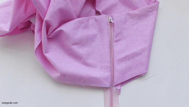 Try closing the zipper – it should align properly so long as you had folded the top edge of the zipper down the same way (till the metal edge) for both sides.
