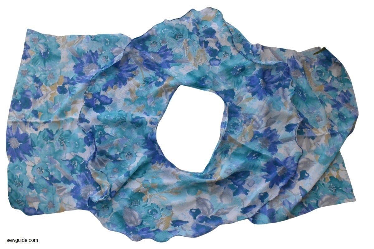 Skills you need to sew this neckline top : Knowledge of making a simple bodice top (Basic bodice block drafting Tutorial), cutting and sewing thin fabric (a challange of its own), hemming an edge with a hemmer foot, cutting a circle from a rectangle fabric.