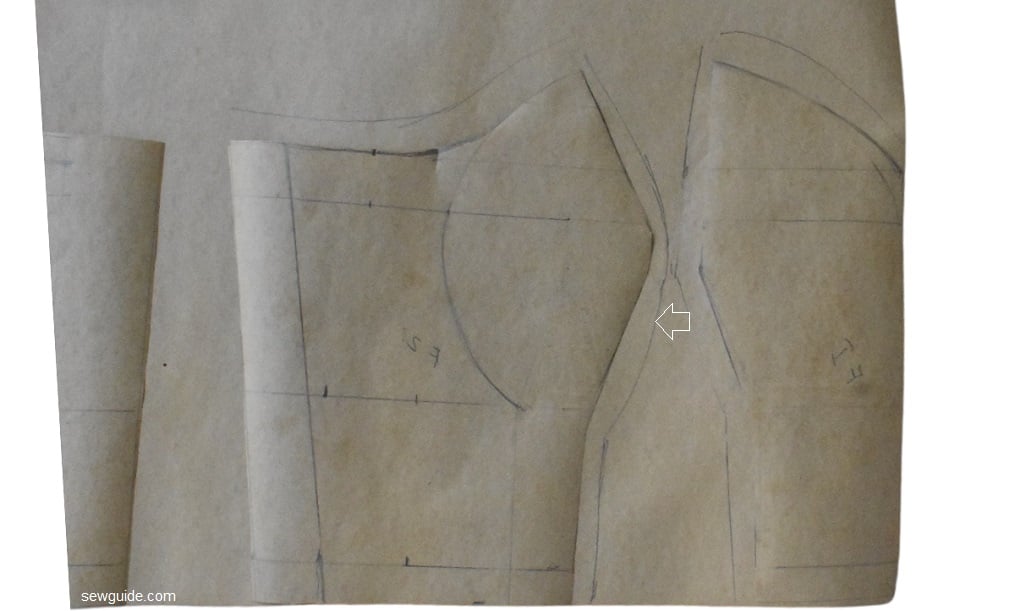 Mark the top edge curved to the armhole as in the picture below.