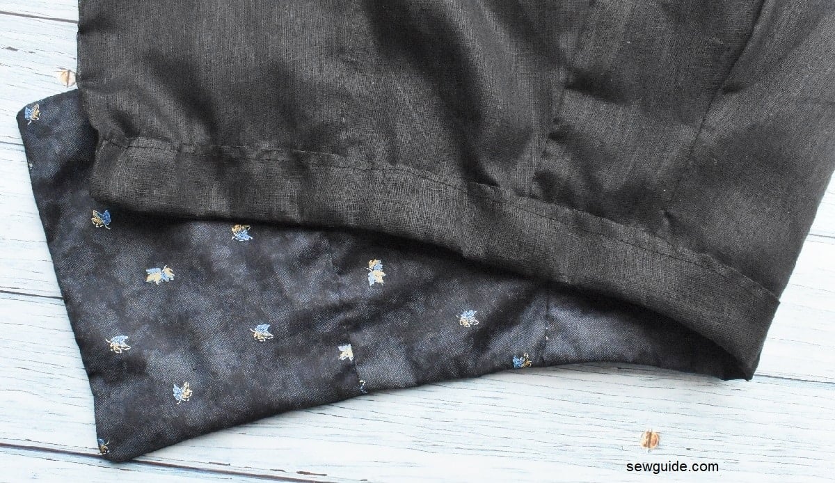 After this fold the sides and take the binding to the back, fold the edge and hand sew in place.