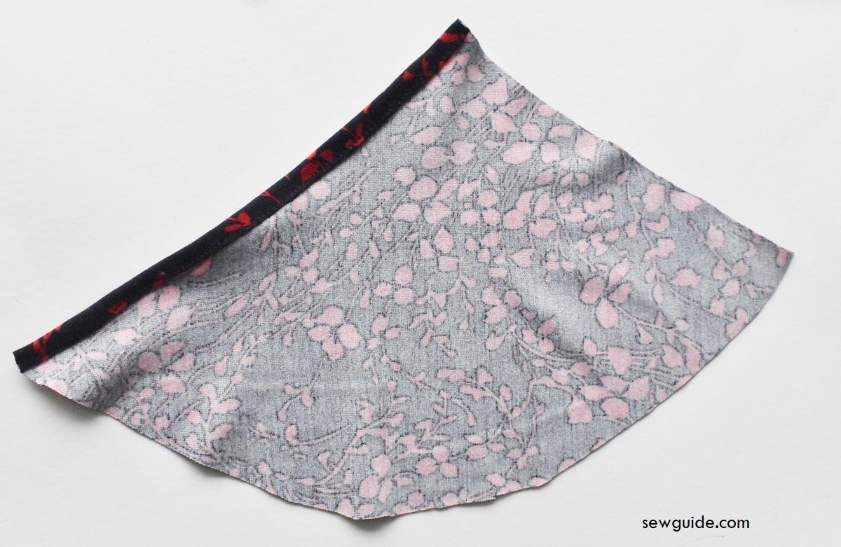 Make a casing along the bottom edge by turning the edge to the inside and stitching in place. Finish both the triangles this way.