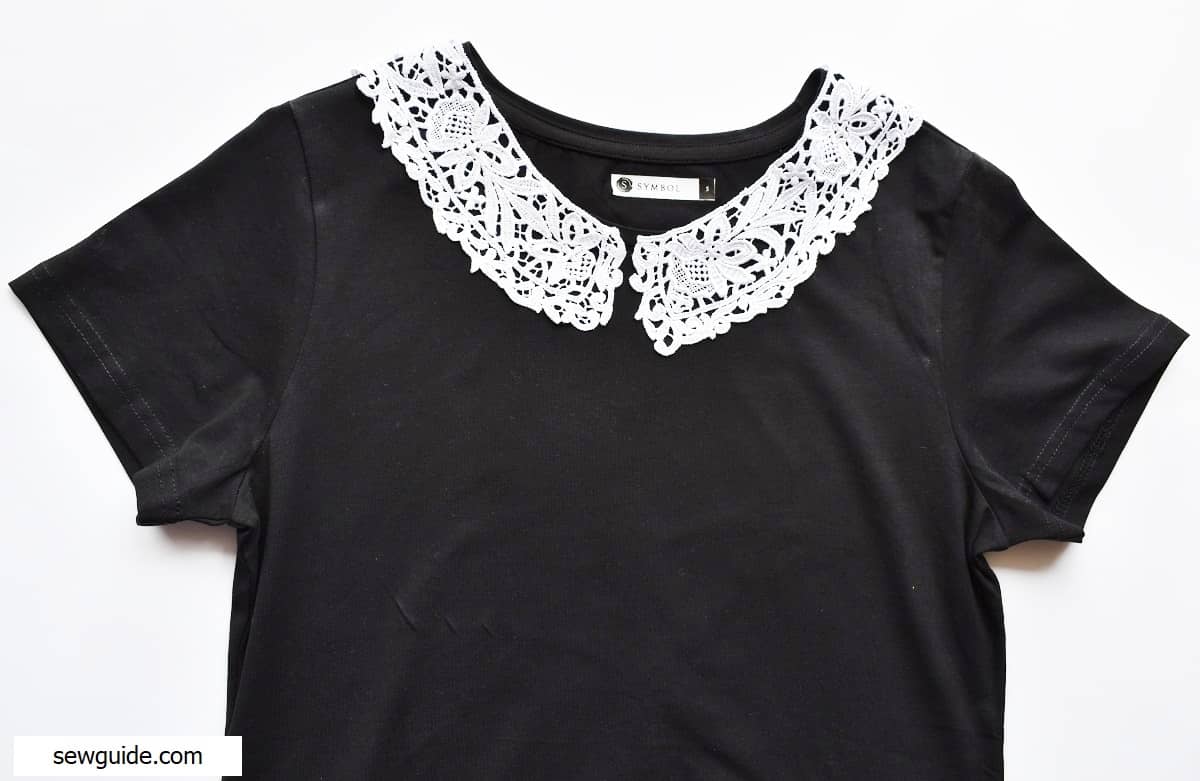 A cute look is a t-shirt with rounded feminine looking collars. You can add flat collars easily on your black t-shirt.