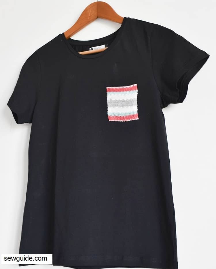 Another way to bring color to your black t-shirt is to add a small patch pocket to it.