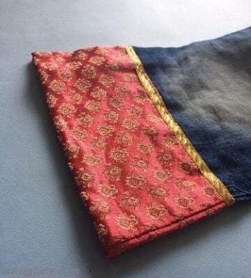 Add this to the hem – First, cut off the hem edge of your jeans. To stitch this, first sew the fabric into a tube by joining the short ends. Fold this by the middle and then, keeping the two edges together, join this to the hem of the jeans.