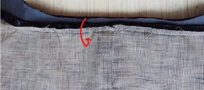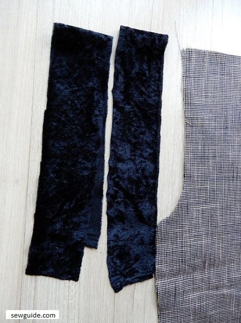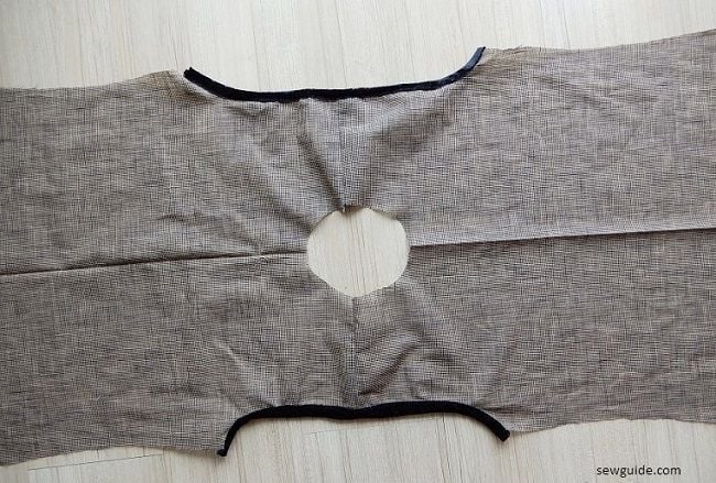 Length of the binding strip needed to bind the neckline should include the circumference of the neckline plus 2″ for overlaping. Cut the strip on the bias.