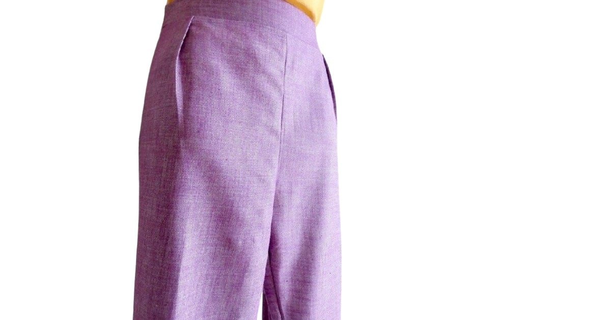 This is a sewing tutorial to make a very comfortable pleated straight pants with a flat front waistband and an elastic waistband for the back